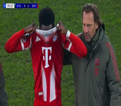 体育播报03月11日宣 拜仁vs亚特兰大第70分钟,阿方索无对抗情况下受伤!直接下场了!镜头拍到阿方索很难过要哭了的表情!