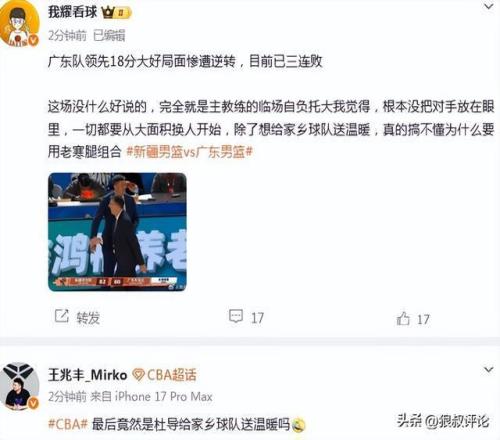 广东遭新疆18分大逆转引热议!杜锋末节争议用人被吐槽家乡送温暖