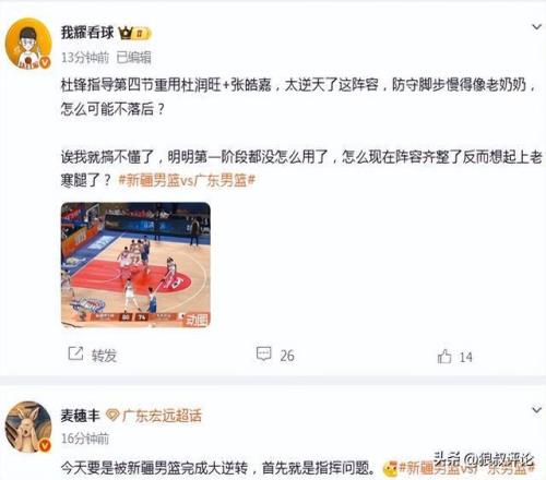 广东遭新疆18分大逆转引热议!杜锋末节争议用人被吐槽家乡送温暖_24直播网