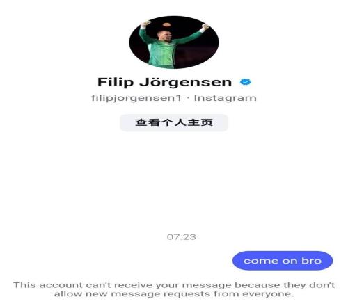 在赛后,约恩森的社交媒体账号涌现了很多批评和谩骂的言论,网友发现约恩森关闭了社交媒体的私信功能,而小编也去核实了这一点(下图)。