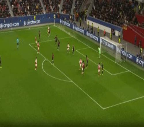 第46分钟,泰里耶接到队友左路传中后,高高跃起头球攻门,被拉亚神勇扑出。