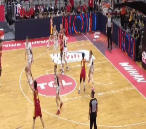 这一节中段,中国队的战术执行比较到位,防守端很有活力,抢断的效力提升了:这一个从防守到反击拿分的过程,很犀利,很流畅!
