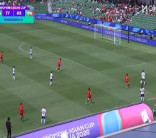 体育播报03月14日宣 女足亚洲杯1/4决赛,中国女足vs中国台北女足。第23分钟,转播方给出控球率对比,中国女足控球...
