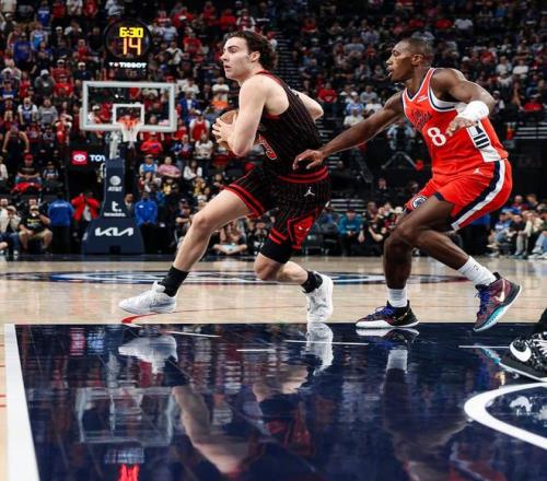 第二节双方轮换阵容对决,巴图姆一上来就空切上篮帮助快船领先来到7分,回过来亚布塞莱三分打破得分荒,马瑟琳立马外线回应,乔丹米勒空切上篮也有比分变成40-31。危险时刻亚布塞莱、吉迪联手打了一波8-0快速缩小分差至1分,乔丹米勒上篮得分,可是迪林厄姆三分也开了比分打成42平,泰伦卢喊出暂停。重新比赛后双方互有来回,公牛攻防两端都能与快船打得有来有回,双方多次打平,桑德斯飞身抢球犯规了,公牛趁机暂停。回到比赛桑德斯抢断打成反击55-51重新领先4分,邓恩、小琼斯内外开花连续得分,公牛这边进攻也打得有板有眼紧紧咬住2个球权左右的分差,最后一个攻防回合,帕威踩线失误乔丹米勒最后抛投没有,这样半场结束快船主场63-57领先公牛6分!