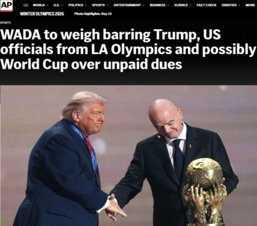 拖欠会费!美联社:世界反兴奋剂机构考虑禁止特朗普出席奥运会