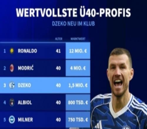 现役年龄40岁及以上球员身价排行:C罗1200万欧最高魔笛哲科二三