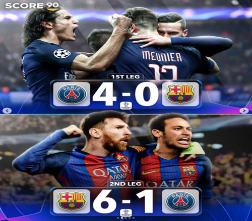 首回合巴黎圣日耳曼4-0巴萨,次回合巴萨6-1巴黎圣日耳曼