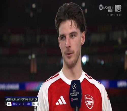 阿森纳在欧冠1/8决赛次回合2-0击败勒沃库森,以总比分3-1晋级。赛后,斩获进球并当选本场MVP的赖斯接受了TNT体育的采访。