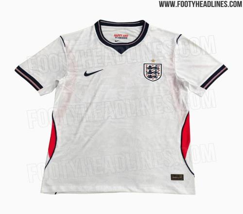 3月17日晚,知名足球装备网站Footy Headlines曝光了英格兰队本届世界杯的球衣谍照,主场球衣以白色为主色调,客场球衣使用红色作为底色。