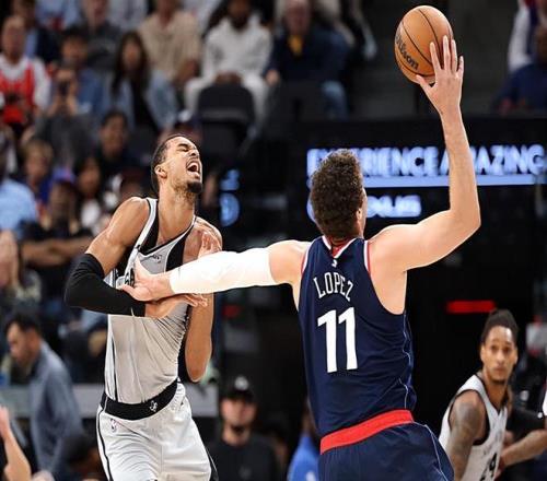 本场比赛中,快船的先发中锋布鲁克-洛佩斯(Brook Lopez)的表现实在是惨不忍睹。洛佩斯全场出场23分34秒,投篮2中1,三分线外1中1,得到了3分1篮板1助攻1抢断2盖帽的数据,还有1次犯规,正负值为-15。洛佩斯在进攻端没有得到什么出手机会,没有刷出任何的存在感,在进攻端的效果也是非常一般的。进攻端表现不佳也就算了,洛佩斯在防守端的问题更是相当突出,他在移动速度和运动能力方面的不足更是被各种放大,简直是被对手各种针对。在年轻且天赋满满的马刺球员面前,洛佩斯完全就是防守端的提款机,对手在他面前简直是予取予求。不夸张地说,洛佩斯的糟糕表现也是在很大程度上导致了球队的失利的。