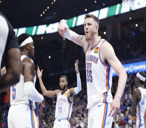 上半场比赛,雷霆中锋哈滕进攻端主要是策应,他出战11分33秒,一次出手都没有,也没有得分,拿到6篮板6助攻,正负值+10。