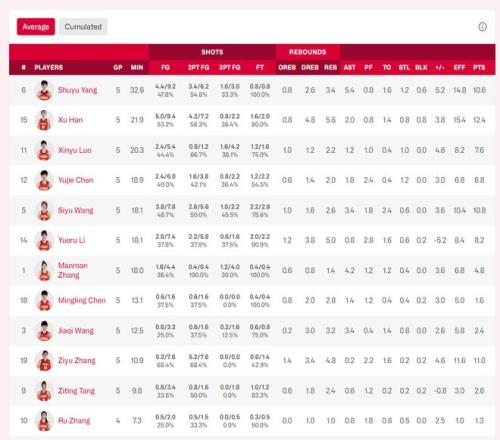 张子宇场均10.9分钟全队倒数第三,但场均11分全队第二,命中率68.4%也是全队第一,场均4.8篮板全队第三,18岁的张子宇已经是这支球队的真正核心。