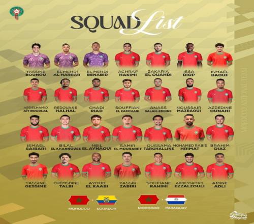 体育播报3月19日宣 摩洛哥国家队公布新一期名单,摩洛哥将在下个国际比赛日的友谊赛中对阵厄瓜多尔、巴拉圭。