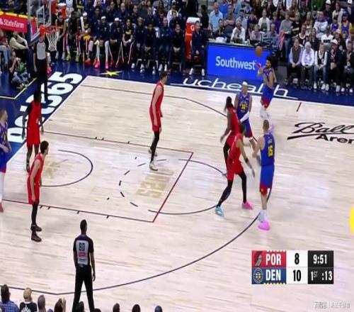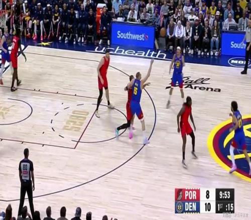 除了补防护框戈登还有其他作用,比如作为第三持球点为约穆分担持球压力。这个进攻回合中,戈登不仅运球过半场,还在三分线策应约穆打成了一个战术。先给约基奇传球然后又给穆雷做了定点掩护,帮助穆雷完成三分出手。