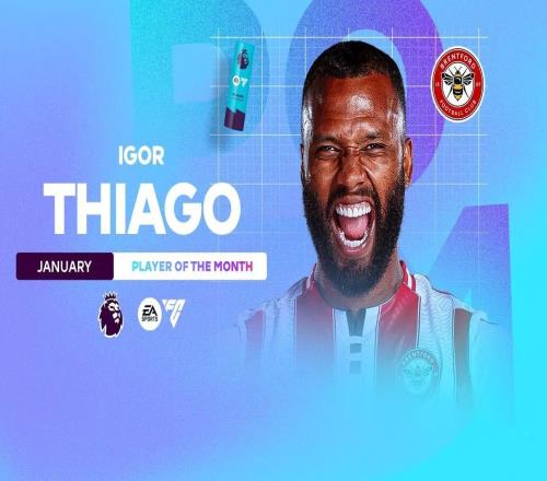 北京时间2月13日,英超官方宣布,布伦特福德前锋蒂亚戈当选联赛1月最佳球员。英超官方公告伊戈尔-蒂亚戈荣获EA ...