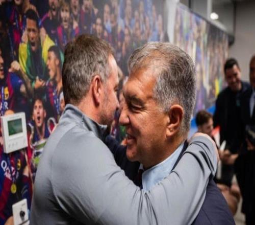 拉波尔塔今日向巴萨一线队球员告别,并亲切问候了弗里克